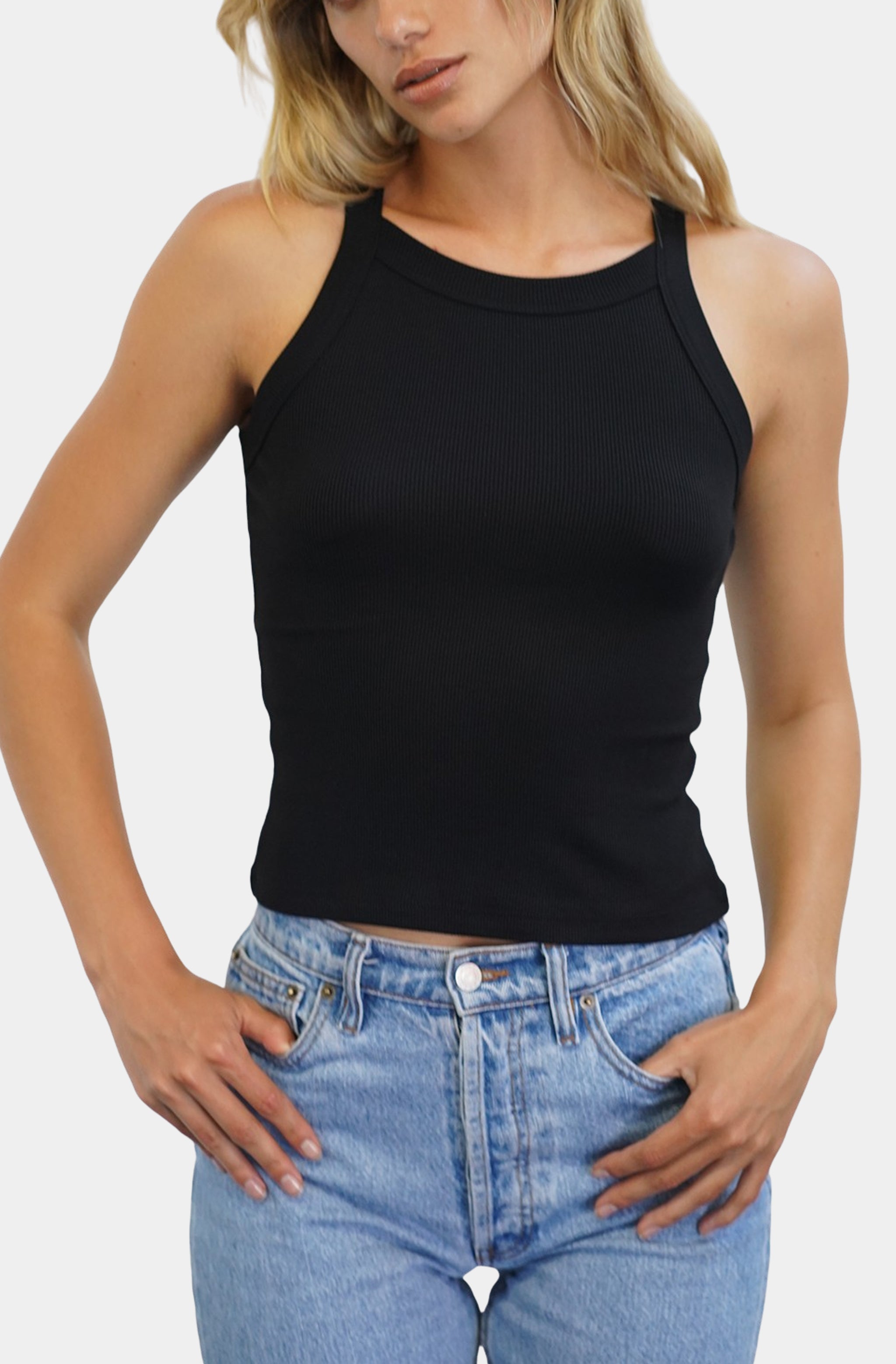 Italian Knit Sleeveless Mock Neck Top